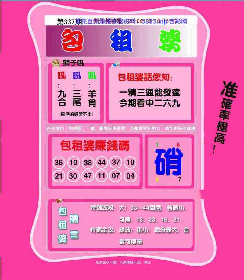 | 337期九码 | 13 12 09 46 30 32 23 19 39 | 開:鸡09 |